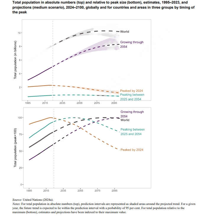 Le fait que le pic de la population mondiale devrait se produire plus tôt et à un niveau plus bas que prévu est important pour plusieurs raisons. Tout d’abord, il signale la fin de l’ère actuelle de croissance rapide de la population, qui a commencé vers 1800 dans certaines régions et au milieu du XXe siècle à l’échelle mondiale. Deuxièmement, la croissance démographique accentue les pressions environnementales en augmentant la demande économique globale. Cela impacte les progrès vers un avenir durable, car une population mondiale atteignant son pic plus tôt et à un niveau inférieur entraînerait probablement une demande réduite pour des ressources telles que la nourriture, le logement, les infrastructures et les services.