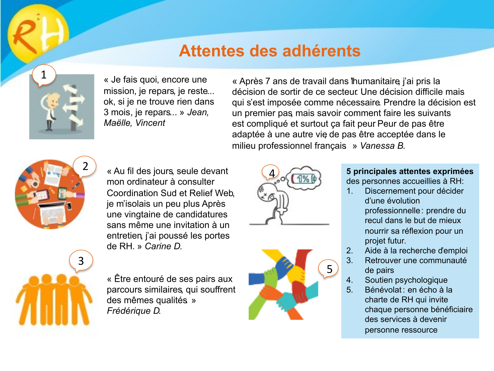 RH is not just about helping people find a job when they return from a humanitarian mission. RH is also a place where people can share their experiences and tell their stories.