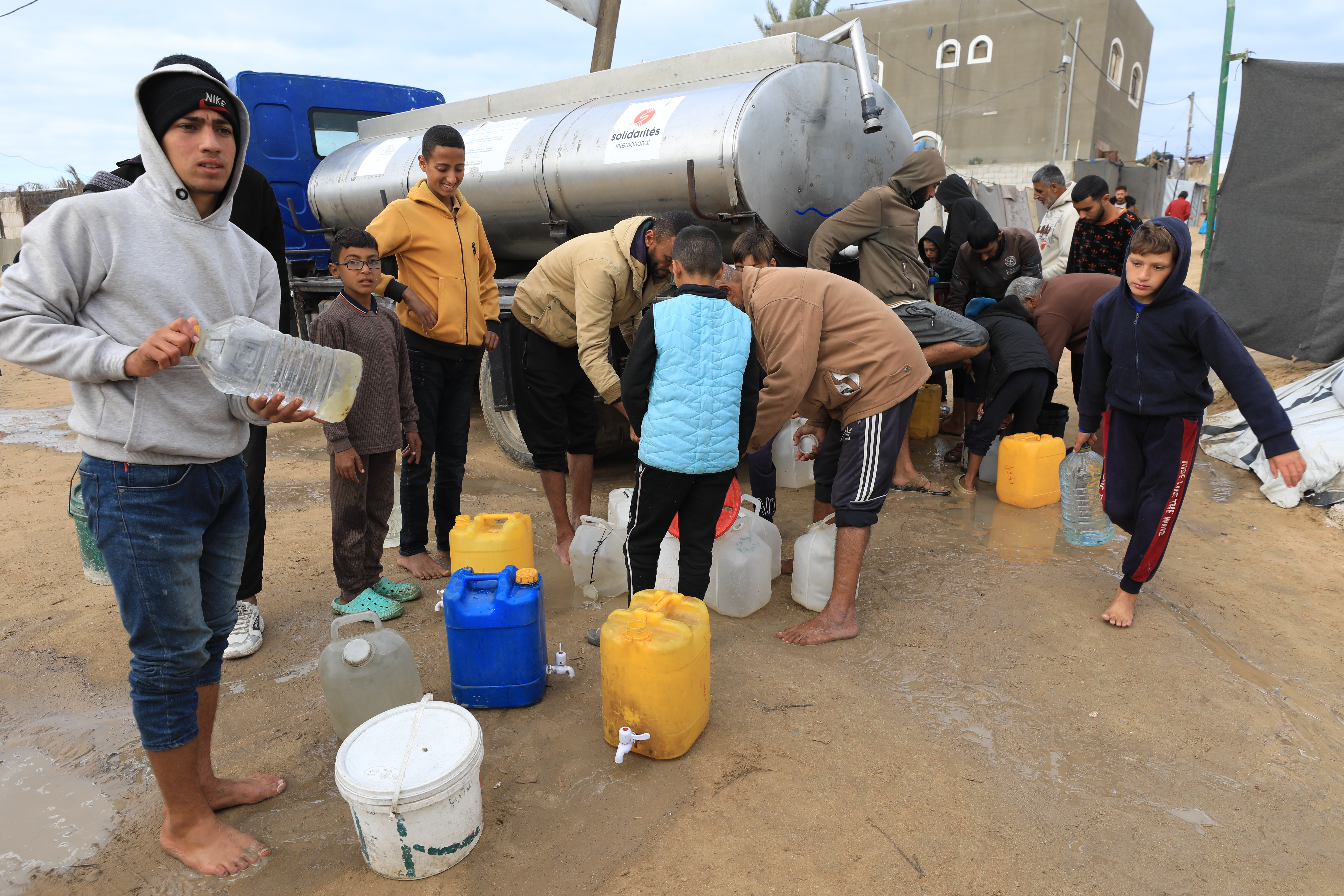 Xavier Lauth: Solidarités International supports and operates desalination stations (owned, with a partner and with private suppliers) which produce drinking water. SI then organizes the distribution of this drinking water by truck throughout the Gaza Strip (in accessible areas). Tens of thousands of liters of water are thus distributed every day in tent sites or destroyed neighborhoods. In addition to this work on drinking water, teams draw and distribute domestic water from various private wells so that people can use it for other purposes. Another part of the intervention also involves securing full latrines and organizing hygiene awareness sessions with the community to establish barriers to the transmission of waterborne diseases. Finally, our teams were starting small agriculture activities on very limited spaces but with the offensive on Gaza City and the renewed displacement of hundreds of thousands of people, there is no more space. Solidarités International has also distributed hygiene items when available, but it is no longer possible to procure any.