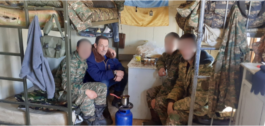 L’auteur avec des soldats arméniens dans une casemate. Photo P.Franceschi.